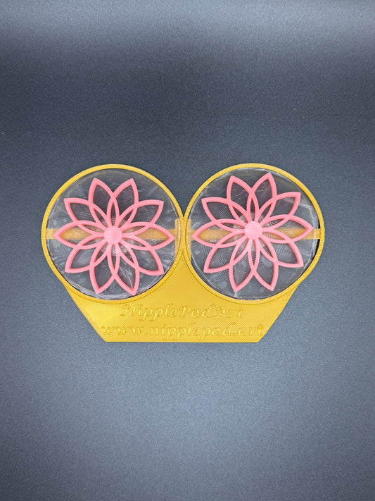 Wiederverwendbare Nippelpads mit Lotus-Design - UV-aktiv - Neongelb - lachsrosa