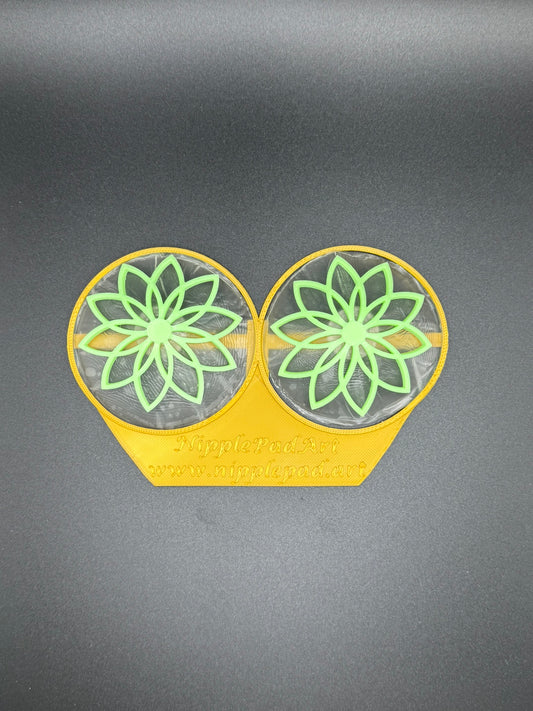 Wiederverwendbare Nippelpads mit Lotus-Design - UV-aktiv - Neongrün