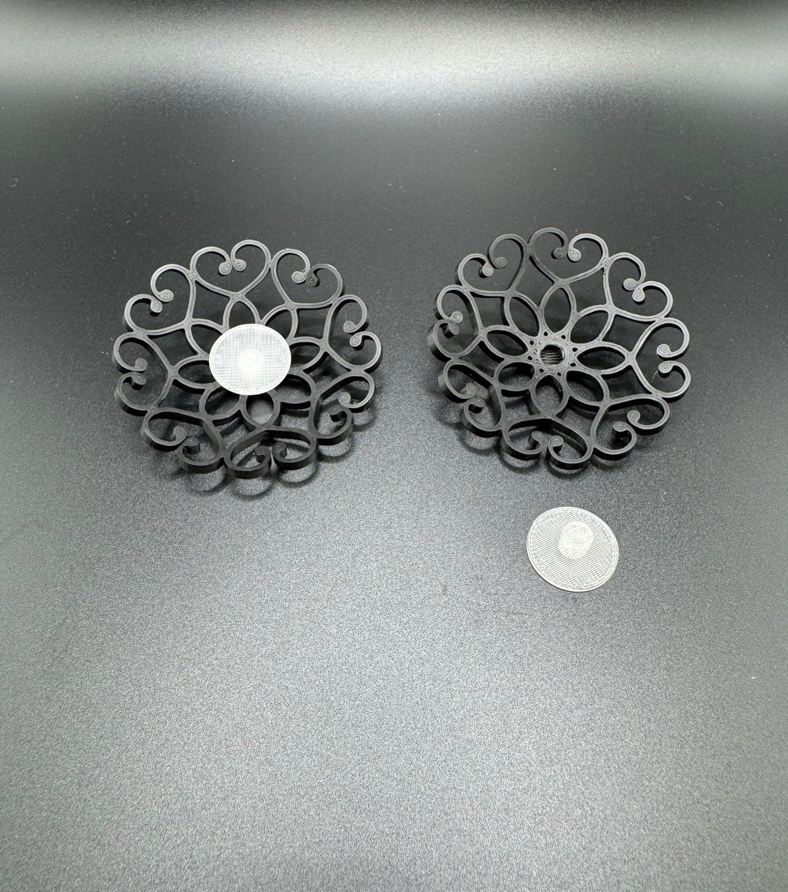 Diese Lotusornamente kommen mit Schrauben und lassen sich leicht an Nippelpads oder an unsere 3D-gedruckten Tops anschrauben.